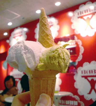 ゆずアイスが、お茶がついてくるというお得なサービス!