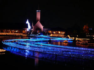 池の中がイルミネーションになっていて