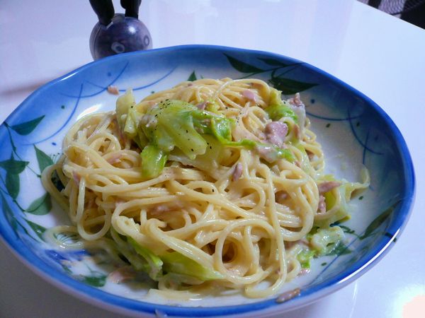 で、キャベツとツナのクリームパスタになりました。
