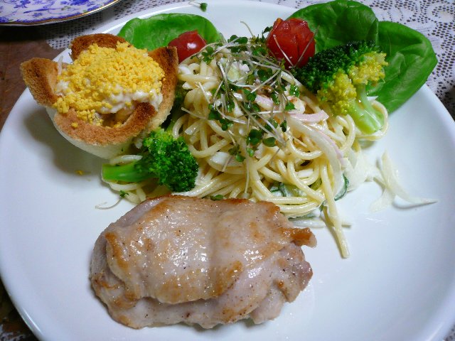 若鳥のレモンソース焼き & かにのクリーム煮パンケースいり & サラダ