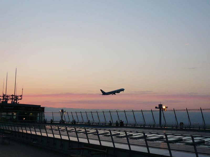 展望デッキは、ちょうど、滑走路の中央あたりがみえるようになっているので、