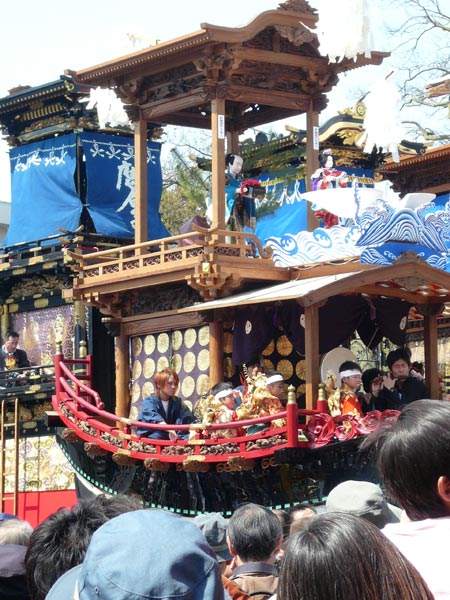左:船の形をしたかわった山車。浦島太郎を演じているようでした。